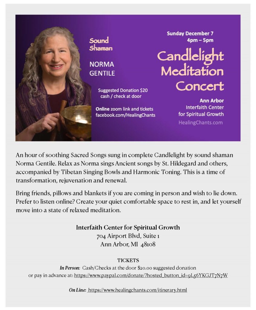 - Sunday, December 7: Norma Gentile Concert, 4-5 pm